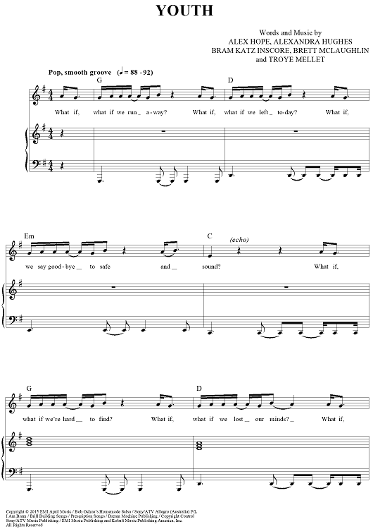 Digital Sheet Music for Youth by Troye Sivan, Alex Hope, Alexandra Hughes, Bram Inscore, Brett McLaughlin, Troy Mellet scored for Piano/Vocal/Chords; id:457602