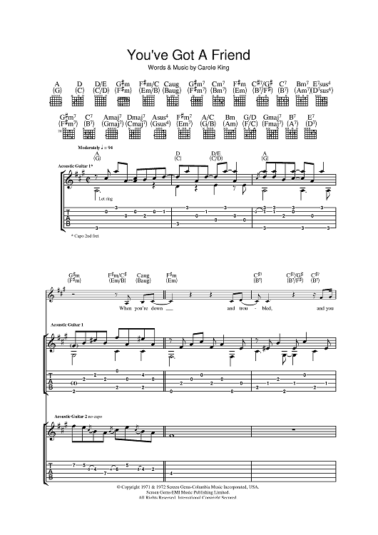 Digital Sheet Music for You've Got A Friend by James Taylor, Carole King scored for Guitar Tab; id:393296