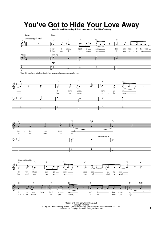Digital Sheet Music for You've Got To Hide Your Love Away by Paul McCartney, The Beatles, John Lennon, Eddie Vedder scored for Bass Tab; id:369657
