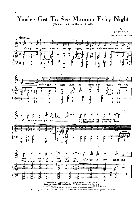 Digital Sheet Music for You've Got To See Mamma Ev'ry Night by Billy Rose, Con Conrad, Dan Dailey scored for Piano/Vocal/Chords; id:423086