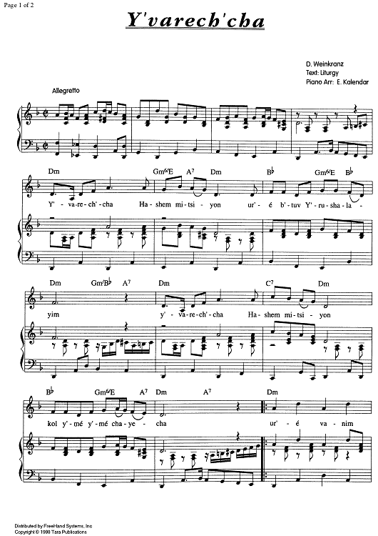 Digital Sheet Music for Y'varech'cha by , Edward Kalendar, D. Weinkranz scored for Voice/Piano; id:343852