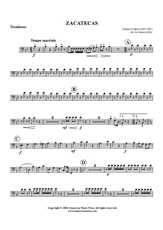 "Zacatecas March - Trombone" Sheet Music by Genaro Codina