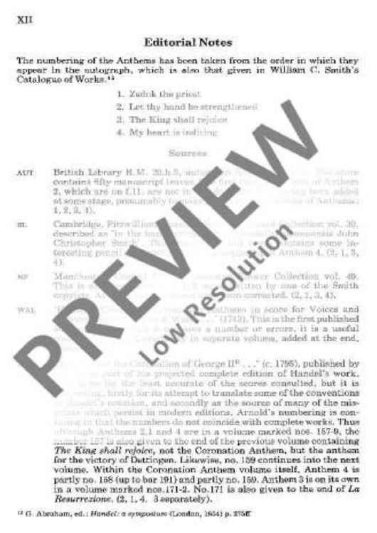"Zadok The Priest - Full Score" Sheet Music by George Frideric Handel