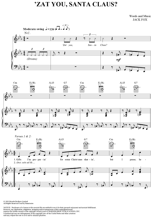 Digital Sheet Music for 'Zat You, Santa Claus? by Garth Brooks, Jack Fox scored for Piano/Vocal/Chords; id:293299