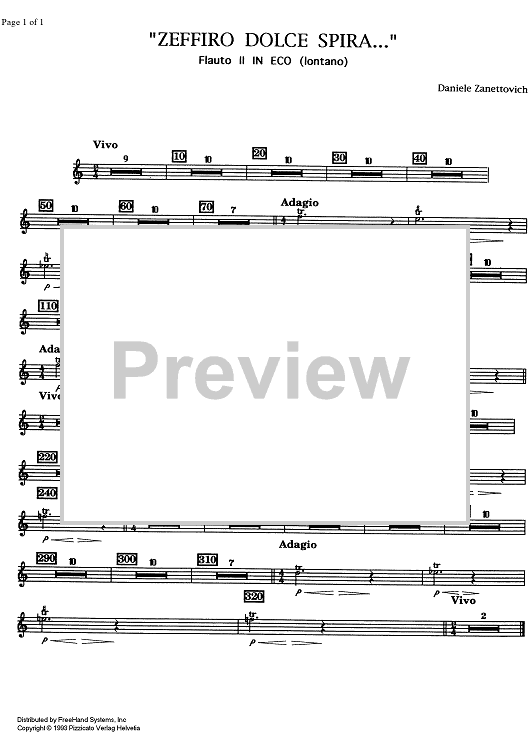 Digital Sheet Music for Zeffiro Dolce Spire [set of parts] by Daniele Zanettovich scored for Flute Ensemble; id:354270