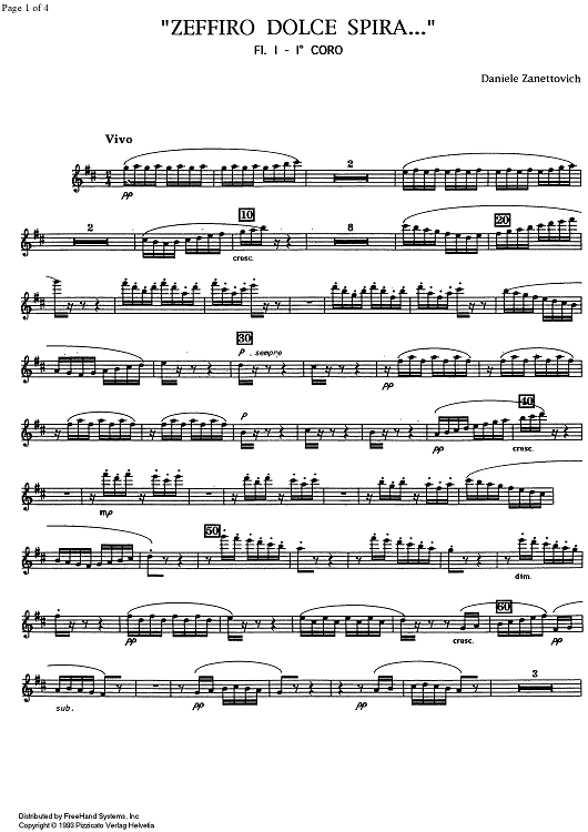 Digital Sheet Music for Zeffiro Dolce Spire [set of parts] by Daniele Zanettovich scored for Flute Ensemble; id:354273
