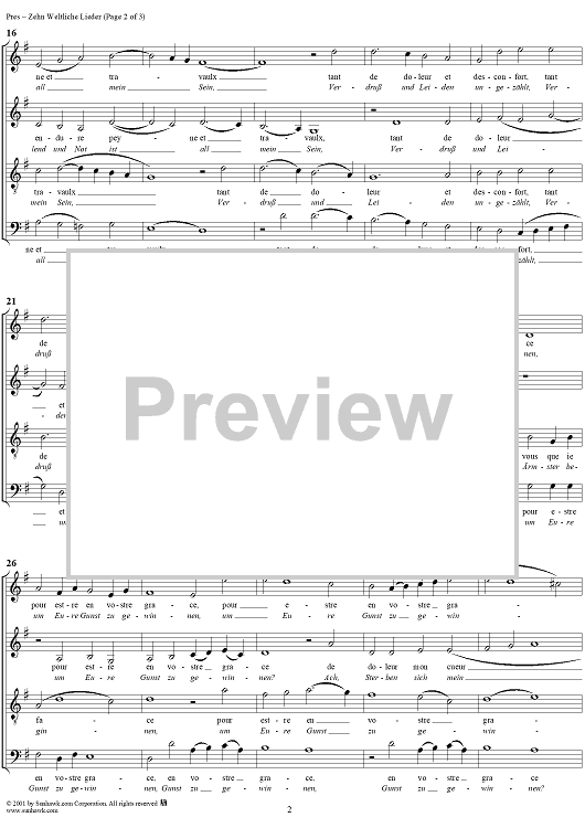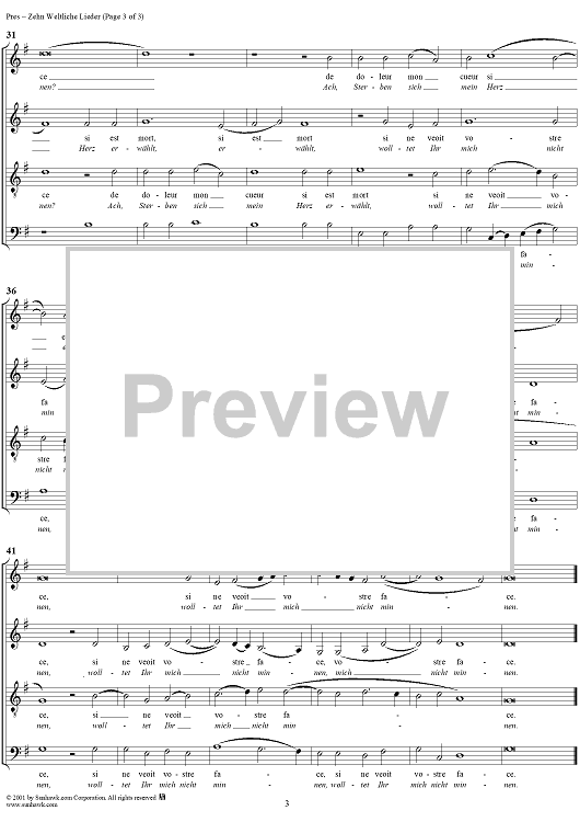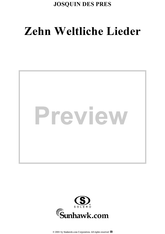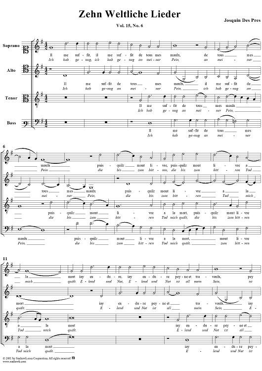 Digital Sheet Music for Zehn Weltliche Lieder, Vol. 15, VI by Josquin Des Pres scored for Four-part Mixed Chorus; id:251010