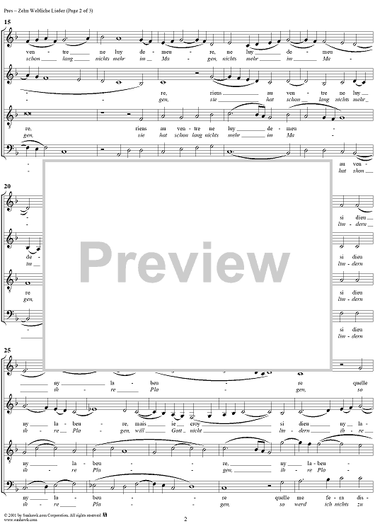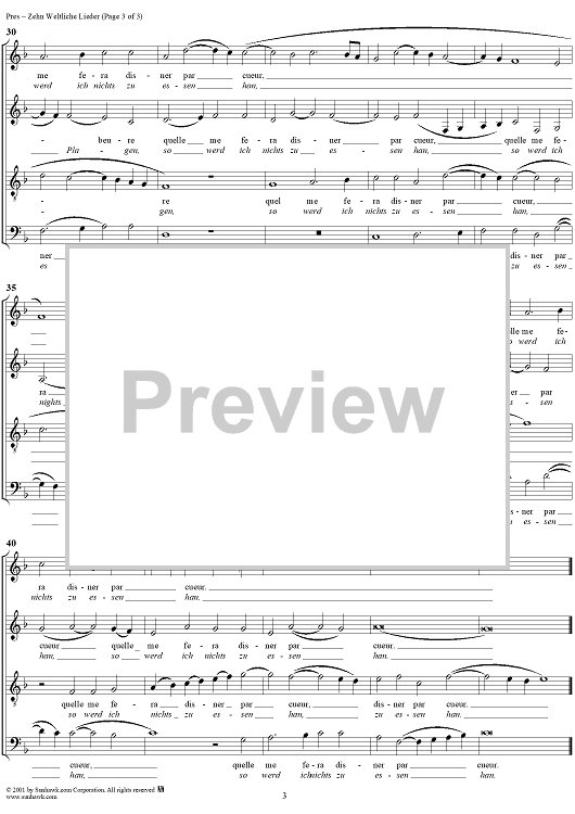 Digital Sheet Music for Zehn Weltliche Lieder, vol.15, VII by Josquin Des Pres scored for Four-part Mixed Chorus; id:251030