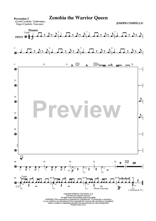 "Zenobia the Warrior Queen - Percussion 2" Sheet Music by Joseph Compello