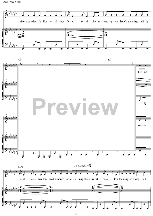 Digital Sheet Music for Zero by John Hill, Daniel Reynolds, Benjamin McKee, Daniel Sermon, Imagine Dragons, Daniel Platzman scored for Piano/Vocal/Chords; id:466669