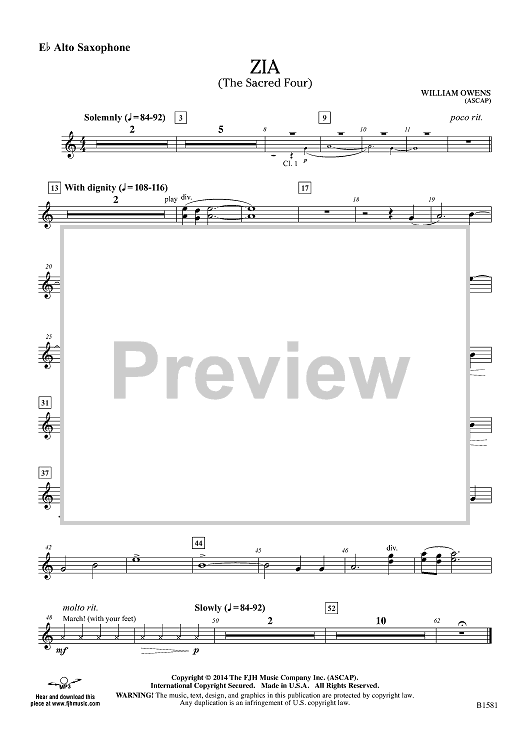 "Zia (The Sacred Four) - Eb Alto Sax" Sheet Music by William Owens