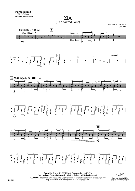Digital Sheet Music for Zia (The Sacred Four) - Percussion 2 by William Owens scored for Concert Band; id:445742