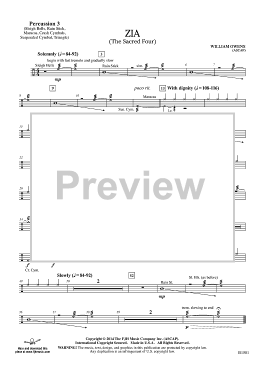 Digital Sheet Music for Zia (The Sacred Four) - Percussion 3 by William Owens scored for Concert Band; id:445743