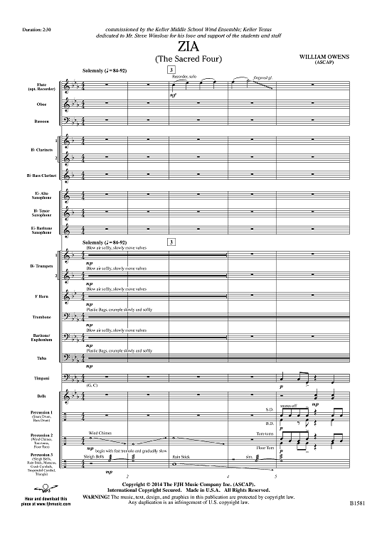 Digital Sheet Music for Zia (The Sacred Four) - Score by William Owens scored for Concert Band; id:445721