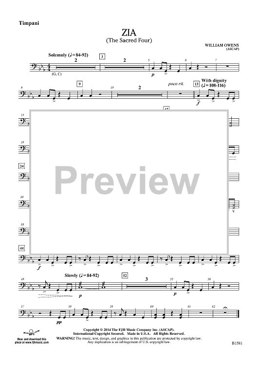 Digital Sheet Music for Zia (The Sacred Four) - Timpani by William Owens scored for Concert Band; id:445739