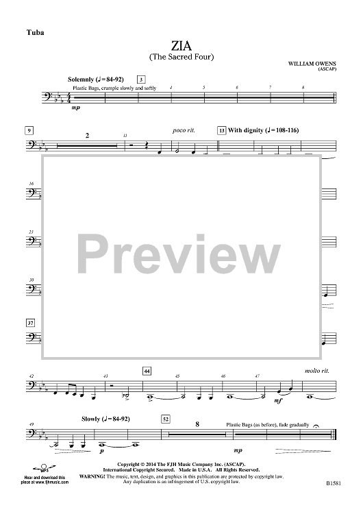 "Zia (The Sacred Four) - Tuba" Sheet Music by William Owens