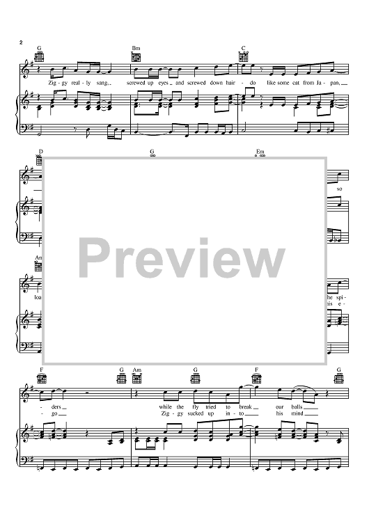 Digital Sheet Music for Ziggy Stardust by David Bowie, Bauhaus scored for Piano/Vocal/Chords; id:371459