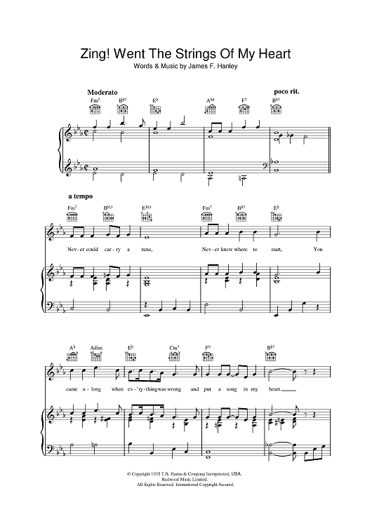 Digital Sheet Music for Zing! Went The Strings Of My Heart by James F. Hanley scored for Piano/Vocal/Chords; id:394456
