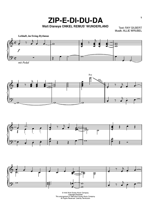 Digital Sheet Music for Zip-A-Dee-Doo-Dah by Ray Gilbert, Allie Wrubel scored for Piano; id:371535
