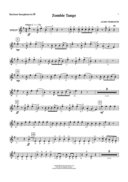 "Zombie Tango - Baritone Sax" Sheet Music by James Meredith