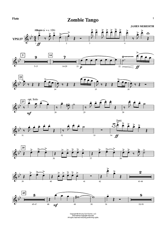 "Zombie Tango - Flute" Sheet Music by James Meredith