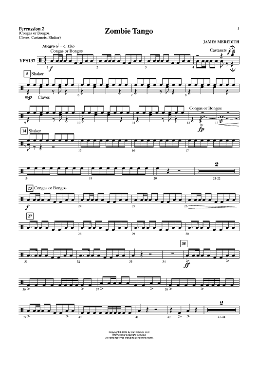 "Zombie Tango - Percussion 2" Sheet Music by James Meredith