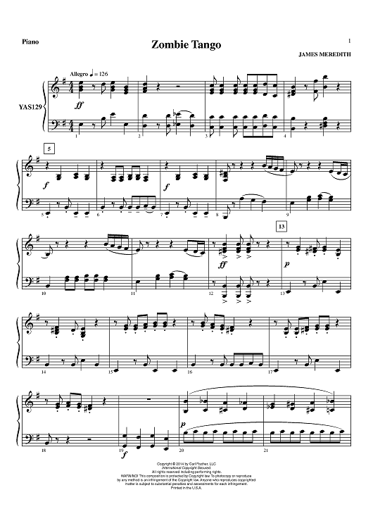 "Zombie Tango - Piano" Sheet Music by James Meredith