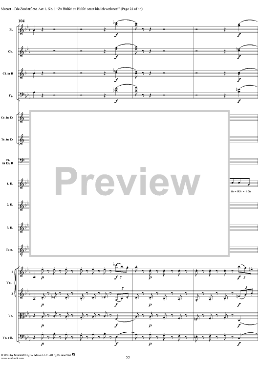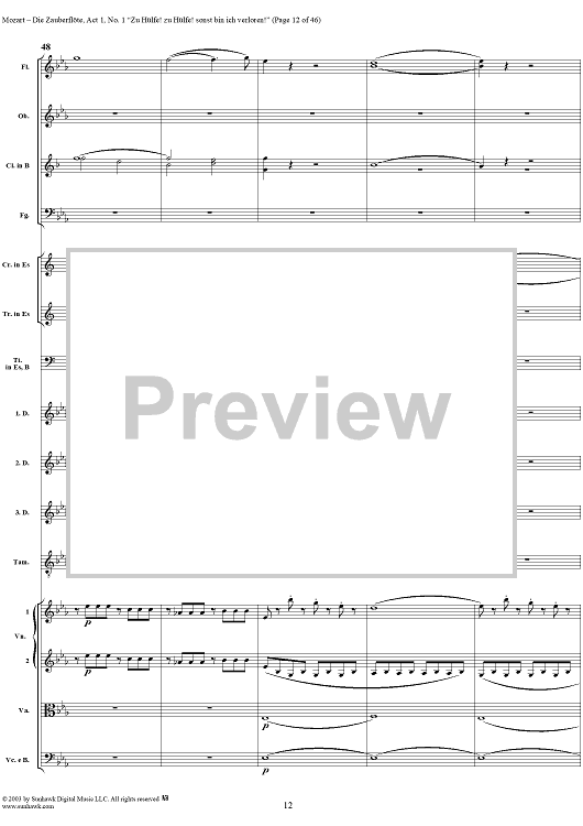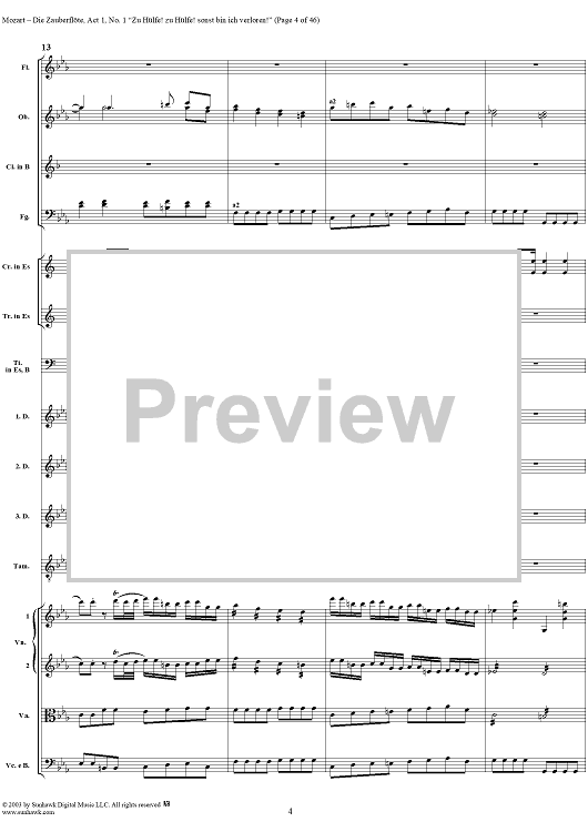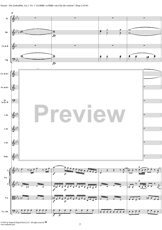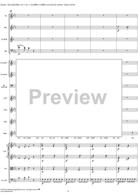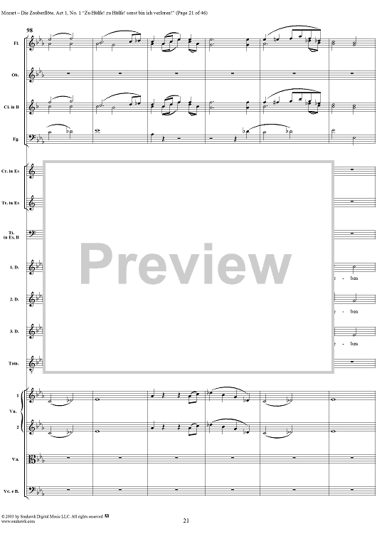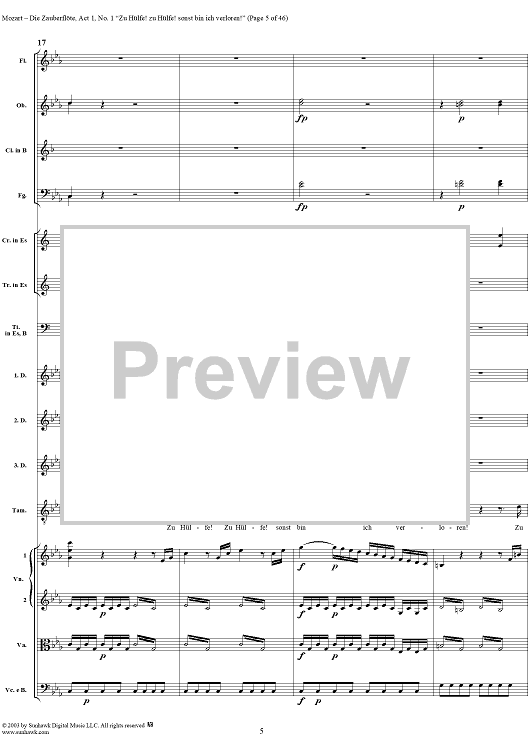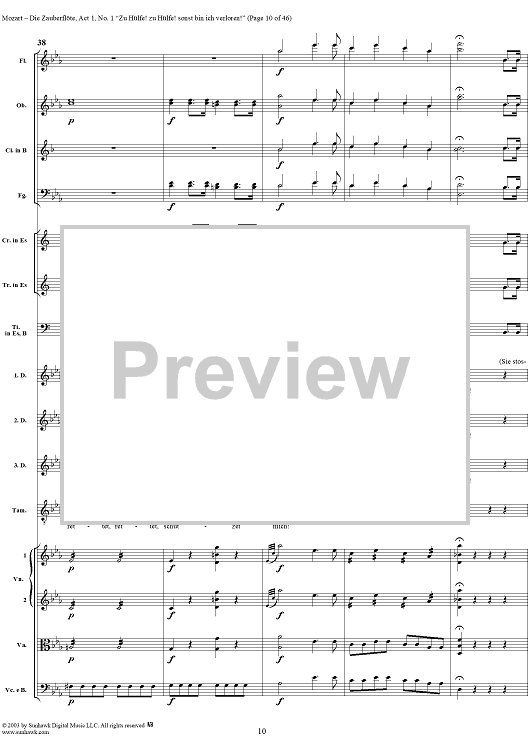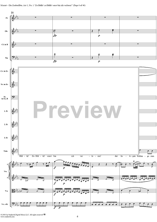 Digital Sheet Music for "Zu Hülfe! zu Hülfe! sonst bin ich verloren!", No. 1 from "Die Zauberflöte", Act 1 (K620) - Full Score by Wolfgang Amadeus Mozart scored for Voice and Orchestra; id:291491