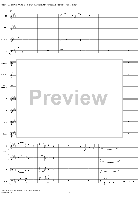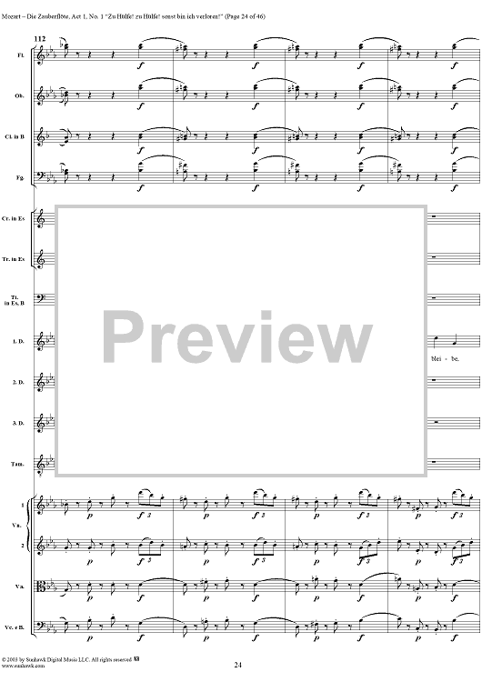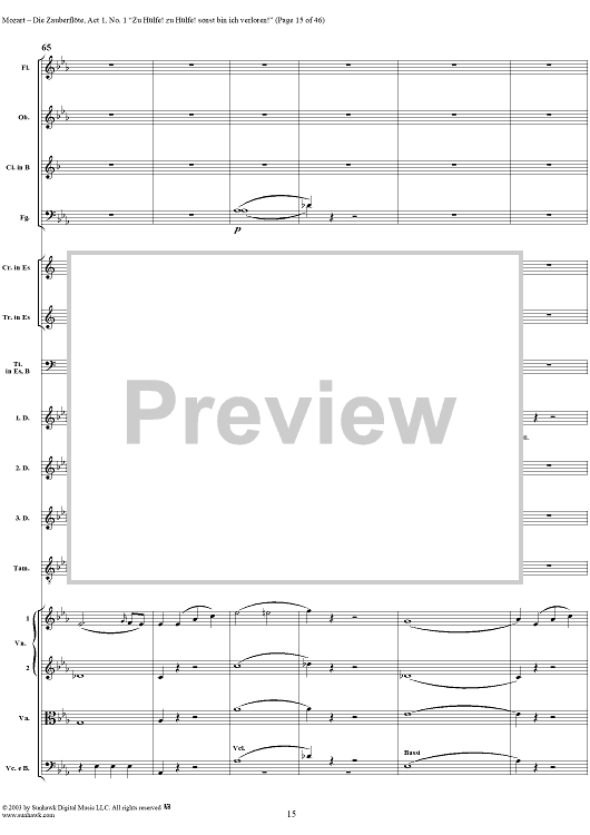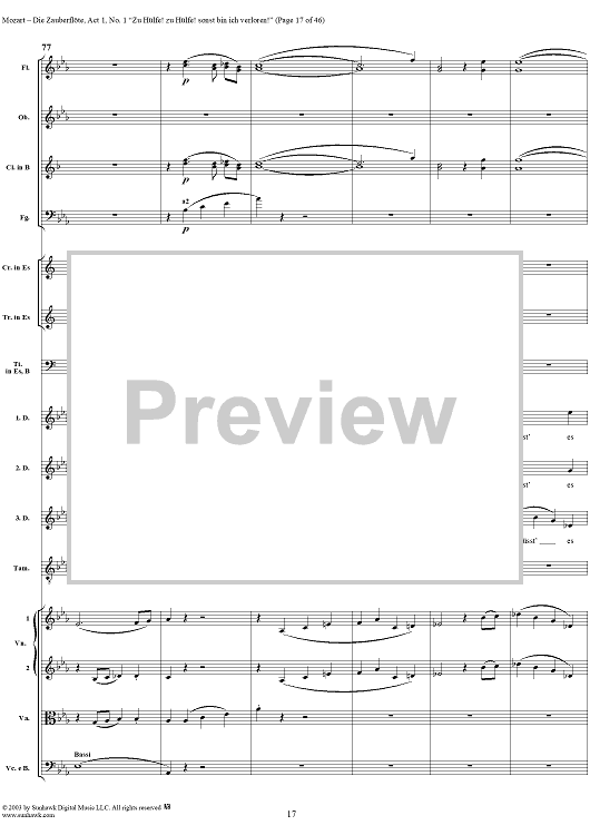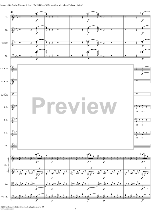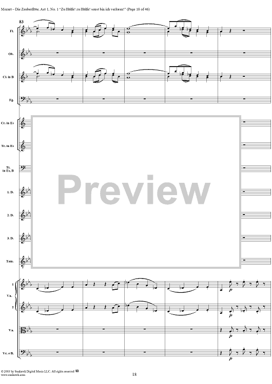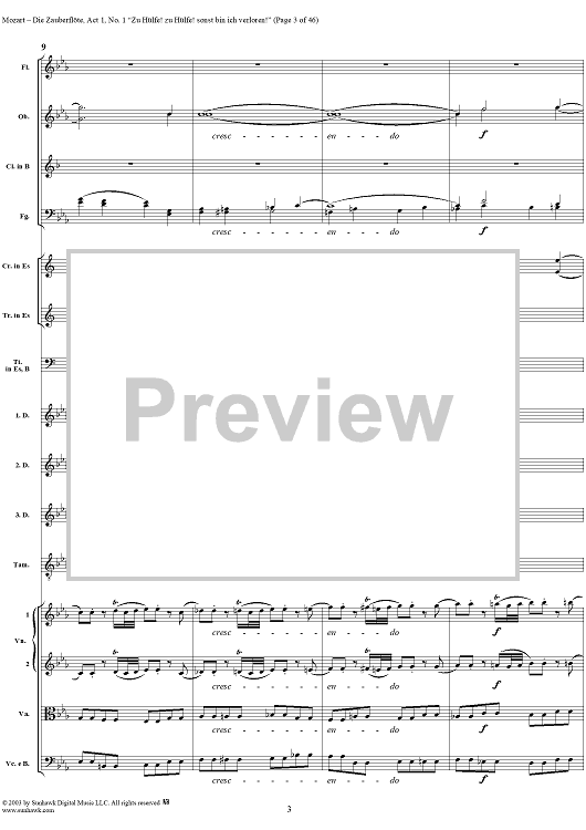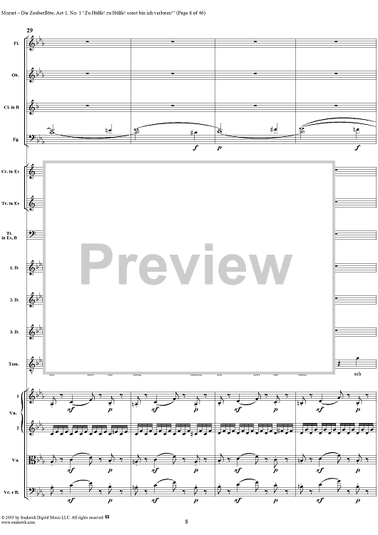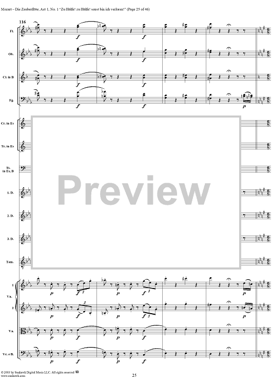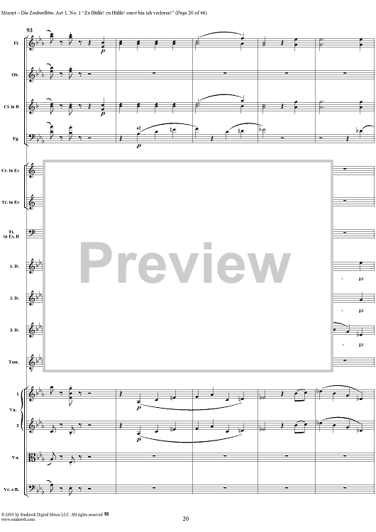 Digital Sheet Music for "Zu Hülfe! zu Hülfe! sonst bin ich verloren!", No. 1 from "Die Zauberflöte", Act 1 (K620) - Full Score by Wolfgang Amadeus Mozart scored for Voice and Orchestra; id:291491