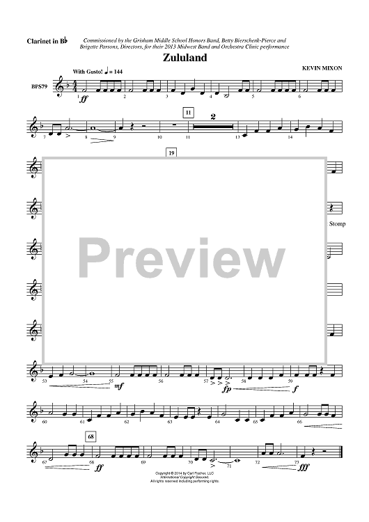Digital Sheet Music for Zululand - Clarinet in Bb by Kevin Mixon scored for Concert Band; id:450644
