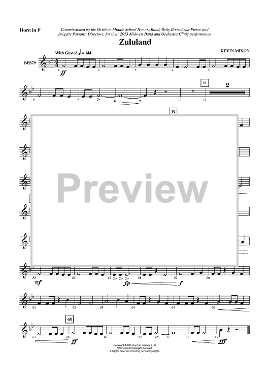 Digital Sheet Music for Zululand - Horn in F by Kevin Mixon scored for Concert Band; id:450650