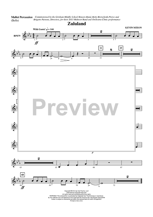 Digital Sheet Music for Zululand - Mallet Percussion by Kevin Mixon scored for Concert Band; id:450654