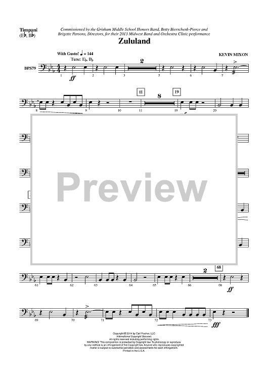 Digital Sheet Music for Zululand - Timpani by Kevin Mixon scored for Concert Band; id:450655