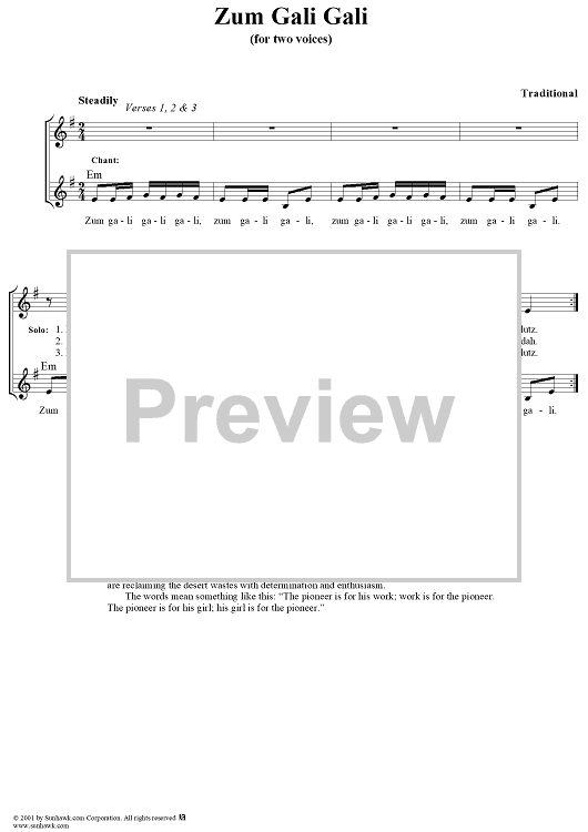 Digital Sheet Music for Zum Gali Gali by Traditional scored for Two Voices; id:262193