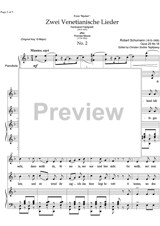 Digital Sheet Music for Zwei Venetianische Lieder No. 2 Op.25 No.18 by , Robert Schumann scored for Mezzo-soprano or Baritone/Piano; id:332523