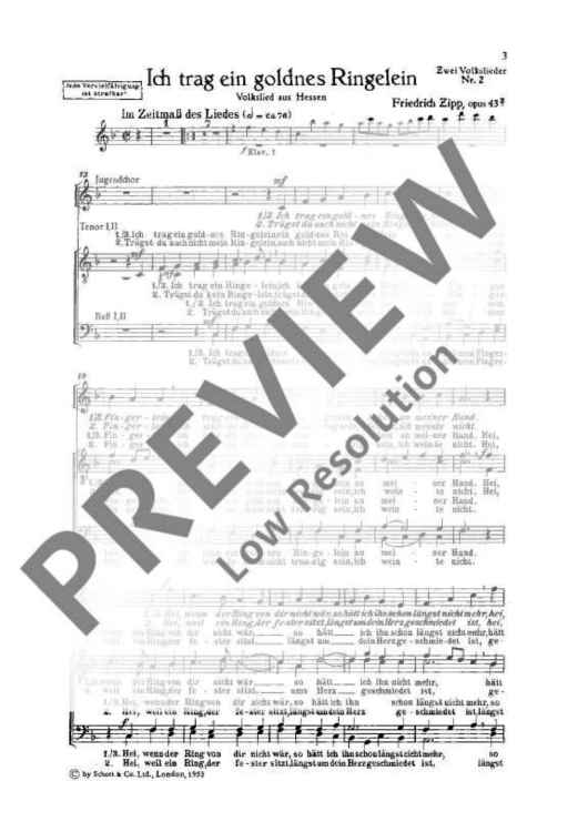 Digital Sheet Music for Zwei Volkslieder - Score by Friedrich Zipp scored for Youth Choir (mez) With Men's Choir (ttbb) A Cappella Or With Piano (4 Hands); id:484142
