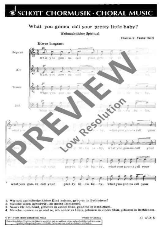 "Zwei weihnachtliche Spirituals - Choral Score" Sheet Music by Franz Biebl