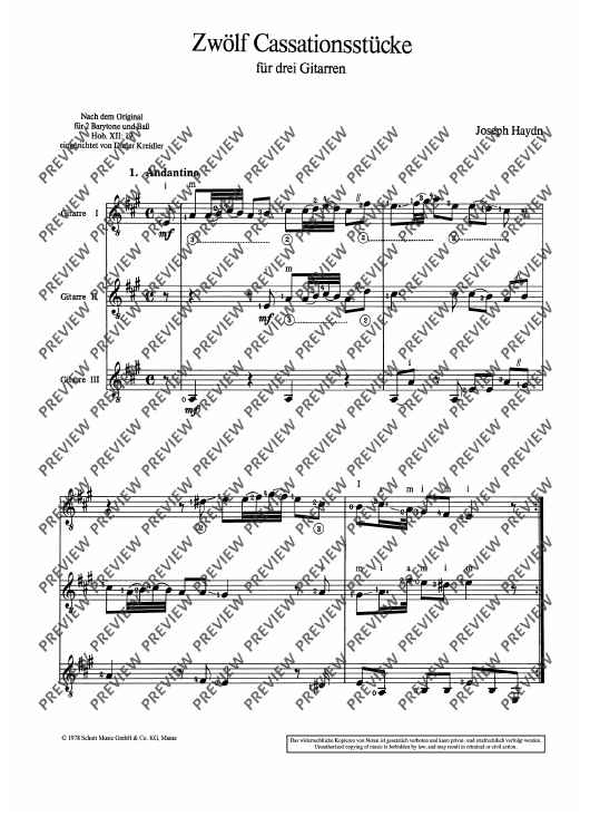 Digital Sheet Music for Zwölf Cassationsstücke - Performing Score by Joseph Haydn scored for 3 Guitars; id:482928