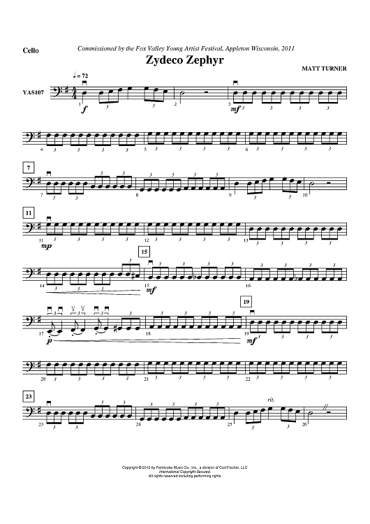 "Zydeco Zephyr - Cello" Sheet Music by Matt Turner